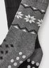2 Pack Black Fairisle Slipper Socks
