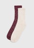 Keep your feet warm and stylish with our 2 Pack Burgundy & Cream Boot Socks. Perfect for layering with boots during colder months, these soft, cozy socks add both comfort and a pop of colour to your outfit. This pack includes one pair in rich burgundy and one in classic cream, providing versatile options to mix and match with your winter wardrobe. Made from a soft, stretchable fabric, they offer a snug fit and cushioned feel for all-day comfort.