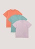 Stock up on comfy casuals with this three pack of plain T-shirts. Cut to our signature fashion fit that’s just a little slimmer than regular, the soft cotton tees are styled in orange, blue and lilac with short sleeves and classic crew necklines.
