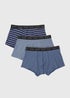 Refresh your selection of everyday essentials with this handy three pack of trunks. Crafted from a soft cotton blend with added stretch, the trunks are styled in blue with our signature 'Easy' branding to the waistbands. What's more, two of the pairs come with cool patterning all over.