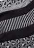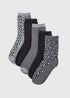 Learn moreOur eye-catching 5 pack animal print socks set is a must-have for your wardrobe. This set includes five pairs of crew socks, 2 adorned with a striking leopard print in a mono-colour design, 1 pair with striped pattern and 2 pairs with a plain black colour, making them both stylish and versatile.