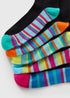 Bring a pop of colour to your everyday basics with this five-pack of black ankle socks. Made from soft stretch cotton, they provide a comfortable, snug fit around the ankle that stays in place all day. Each pair features bright striped soles and toes, adding a playful touch to an otherwise classic design.