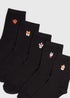 5 Pack Black Dog Embroidered Crew Socks
