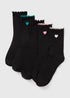 Learn moreAdd a playful touch to your outfit with the Black Heart Embroidered Frill Socks. Made from soft, comfortable fabric, these ankle socks feature a delicate frill trim and a charming heart embroidery for a sweet, feminine look. Perfect for everyday wear, casual outfits, or layering with your favourite shoes, these socks bring subtle style and comfort to your wardrobe.