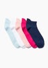 Stock up on everyday essentials with this handy five-pack. Crafted from soft microfibre, the socks are designed to remain hidden beneath trainers and come in a selection of blue, pink and white.