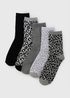 Stock up on everyday essentials with this 5 Pack Mono Animal Ankle Socks set. Featuring subtle animal-inspired designs in classic monochrome tones, these socks combine comfort with understated style for daily wear.