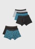5 Pack Teal Keyhole Leaf Striped Boxers
