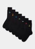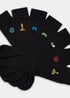 Stock up on everyday essentials with this cosy multipack. It includes 7 pairs of ankle socks, all created with soft and stretchy fabric for great comfort all day long. Featuring classic black bases, they're finished with charming gaming embroidery in blue, yellow, white, red, green and orange variations.