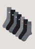 Are you a sports fan? Then you'll love stocking up on your essentials with this charming multipack. It includes 7 pairs of socks in a classic mix of grey and black, each crafted from a soft cotton blend for all-day comfort. To finish, they come with a range of sport-themed embroidery, including a football T-shirt, darts board and trophy.