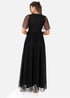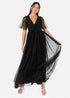 A true bridesmaid style that's both elegant and flattering. Anaya's craftsmanship shines through in the twist detail, created by gathering tulle at the base of the V-neckline, which sculpts a defined waistline and flows into a classic A-line silhouette. Simply complement this short-sleeve black maxi dress with black strappy heels and silver jewellery.