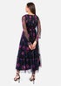 A captivating choice for wedding guest elegance, this navy dress strikes the perfect balance between modern allure and timeless femininity. Crafted from airy tulle and adorned with a striking floral print, the design features a faux wrap bodice with a flattering V-neckline, an elasticated waist for effortless definition, and sheer long sleeves for a contemporary finish. Cascading into an elegant A-line silhouette, the gathered skirt is thoughtfully panelled at the hem, creating an elongated shape and extra movement with each step. For a polished, harmonious look, coordinate your accessories with a hue drawn from the floral motif.