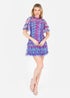 At Anaya with Love each item is consciously designed and made with 100% recycled fabric allowing you to embrace both style and sustainability. A true celebration of refined femininity, this dress is designed to captivate wherever you go. The multicoloured tulle fabric showcases breathtaking blue, pink, and purple hues, evoking the beauty of an aurora. A gathered bodice and dropped waist create a flattering silhouette, while the ruffled mini skirt adds playful movement to every step. Delicate sheer short sleeves lend an ethereal touch, striking the perfect balance between elegance and contemporary style. Complete the look with platform heels and shimmering accessories for a fun, statement-making ensemble.