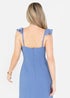 At Anaya with Love each item is consciously designed and made with 100% recycled fabric allowing you to embrace both style and sustainability. Designed to bring radiance to every special occasion, this ocean blue maxi dress is a standout favourite this season. Crafted from lightweight and breathable fabric, it features a flattering V-neckline and a ruched bust that beautifully frames the empire waist silhouette. Ruffled shoulder straps add a romantic touch, while a thigh-high split adorned with cascading ruffles creates fluid movement and effortless style. Pair this blue maxi dress with silver jewellery and strappy heels for an elevated holiday look.
