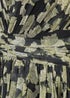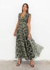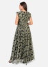 At Anaya with Love each item is consciously designed and made with 100% recycled fabric allowing you to embrace both style and sustainability. Anaya's signature style is showcased through the meticulously gathered detailing that flows throughout the entire maxi, creating a dreamy, ethereal aura. The in-house designed floral print in soft green hues sits against a black tulle base, forming a harmonious blend that reflects the seasons grounded, earthy aesthetic. A striking horizontally gathered waist panel highlights the dress natural A-line silhouette, while flutter details at the shoulders and a deep V neckline elevate its feminine charm. And for a touch of allure, a thigh-high split in the maxi skirt invites a confident strut onto the dancefloor. Complete the look with strappy heels and a shimmering clutch for a classy finish.