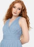 At Anaya with Love each item is consciously designed and made with 100% recycled fabric allowing you to embrace both style and sustainability. Its elegant hue and subtle detail make this maxi a must have for your upcoming summertime wedding. Suspended from an elegant halter neckline it also boasts a faux wrap bodice with a V shaped front and daring open back. Gathered tulle creates a textured yet refined finish complemented by a contrasting waist panel cinched at the waist allowing the A-line silhouette to flatter all body shapes. Style this timeless bridesmaid gown with silver heels and sparkling accessories for an unforgettable look.
