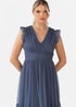 At Anaya with Love each item is consciously designed and made with 100% recycled fabric allowing you to embrace both style and sustainability. This Blue maxi dress captivates with its meticulously gathered design that flows elegantly from top to bottom, enveloping you in a dreamy aura. The striking horizontally gathered waist panel accentuates the dress natural A-line silhouette, while sleeves and a classic V neckline enhances its feminine charm. The classic A-line skirt flatters all body shapes, complemented by layered ruffle details that add a touch of subtle volume. Pair this Vintage Indigo dress with strappy heels and a shimmering clutch for a glamorous evening look or opt for pastel accessories to effortlessly elevate your daytime ensemble.