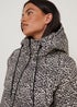 Get cosy without compromising on style with this short padded puffer coat. Complete with functional design features including a front zip fastening, two side pockets, a snuggly hood with an adjustable drawcord and an elasticated hem and sleeve cuffs, the coat is styled with an animal print that you're sure to go wild for. * Length: 69.5cm. * Model Height: 5ft 9 1/2.