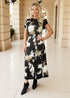 AX Paris Black Abstract Print Flutter Sleeve Midi Dress
