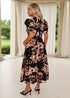 AX Paris Black Abstract Print Puff Sleeve Smock Midi Dress