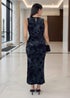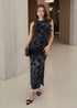 Embrace sophistication and romance in our Black And Grey Velour Rose Detail Bodycon Midi Dress. Crafted from a soft, stretch fabric, it features delicate velour rose detailing set against a smoky grey base, a form-fitting silhouette, mini slip lining, a sleeveless top with a round neckine, a back neck loop closure, and a ruched skirt with side. Style it with strappy heels and a cute clutch for your next glam event. Model wears: UK 8/ EU 36/ US 4 Model's height: 173cm/ 5'8" Approx length from centre back to hem: 139 cm Fabric composition: 95% Polyester, 5% Elastane Colour: BLACK *Print position may vary* *Please note, this style does not have a zip due to the garment being made of stretch fabric*