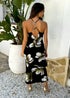 AX Paris Black And White Floral Print Strappy Twist Back Slip Midi Dress