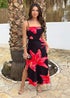 AX Paris Black & Coral Red Floral Print Strappy Slip Midi Dress