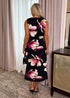 AX Paris Black Floral Print Gathered Midi Dress With Shoulder Pads