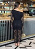 Feel sophisticated all night long in our Black Lace Overlay Off The Shoulder Long Sleeve Midi Dress. Featuring all over lace fabric, an open off the shoulder neckline, ruched shoulder detailing, a draped effect, mini lenght body lining, unlined lace sleeves and a midi lace skirt with side split. Pair with some statement jewellery and heels to complete the look! Model wears: UK 8/ EU 36/ US 4 Model's height: 173cm/ 5'8" Approx length from centre back to hem: 132cm Fabric composition: 95% Polyester, 5% Elastane Colour: BLACK *PLEASE NOTE, THIS STYLE DOES NOT HAVE A ZIP DUE TO THE GARMENT BEING MADE OF STRETCH FABRIC*