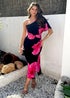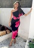 AX Paris Black & Magenta Floral Print One Sleeve Midi Dress