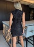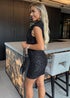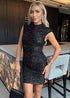 AX Paris Black Sequin High Neck Ruched Bodycon Mini Dress