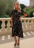 AX Paris Black & Stone Polka Dot Puff Sleeve Tie Waist Midi Dress