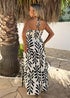 AX Paris Black & White Leaf Print Tie Neck Shirred Top Smock Midi Dress