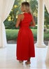 AX Paris Blood Orange Racer Neck Pleated Skirt Midi Dress