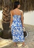 AX Paris Blue Floral Print Strappy Cut Out Midi Dress