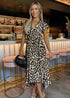 AX Paris Brown Leopard Print Short Sleeve Belted Wrap Midi Dress