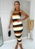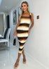 AX Paris Brown Ombre Printed Square Neck Bodycon Midi Dress