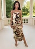 AX Paris Brown Smudge Print Strappy Ruched Side Midi Dress