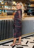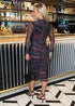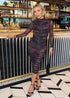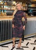 AX Paris Burgundy And Black Smudge Print Long Sleeve Ruched Bodycon Mesh Midi Dress