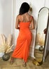 Seriously eye-catching, our Burnt Orange Strappy Wrap Top Knot Skirt Midi Dress is a must have this season. Featuring our comfortable stretch jersey fabric, adjustable straps, a v neck wrap top, side zip and a knot front draped midi length skirt with split. Pair with strappy heels, a matching bag and your favourite accessories for the most glam evening look!