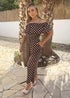 AX Paris Chocolate Polka Dot Bardot Frill Culotte Jumpsuit