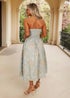 AX Paris Duck Egg Floral Jacquard Bandeau A-Line Midi Dress