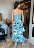 AX Paris Duck Egg Floral Print Racer Neck High Low Frill Hem Midi Dress