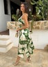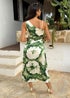 AX Paris Green Marble Print Strap Detail Asymmetric Cut Out Midi Dress