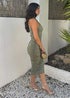 AX Paris Light Khaki Draped Halter Neck Ruched Midi Dress