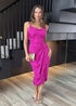 AX Paris Magenta Embroidered Strappy Cowl Neck Gathered Skirt Midi Dress