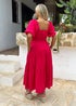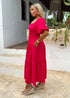 AX Paris Magenta Puff Sleeve Shirred Waist Smock Midi Dress