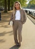 Our Mocha Bubble Hem Cropped Soft Bomber Jacket blends style with everyday comfort. Designed in a soft fabric with a relaxed fit, it features a collarless neckline, balloon sleeves with elasticated cuffs, cropped length, a bubble hem, side pockets and a zip-up front. Perfect for off-duty days or casual meetups, this jacket can be worn with jeans or with our matching trousers for a laid back look. Model wears: UK 8/ EU 36/ US 4 Model's height: Approx length from centre back to hem: 47 cm Fabric composition: 100% Polyester Colour: MOCHA