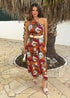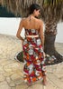 AX Paris Multi Butterfly Print Halterneck Straw Belt Tiered Midi Dress