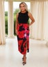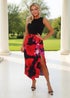 Feel effortlessly sophisticated in our Multi Floral Print 2 in 1 Side Bow Detail Midi Dress. Featuring a fitted silhouette, a sleek black sleeveless top, a faux tie wrap skirt with a cute bow detail and a zip up back. Pair it with strappy heels and a matching clutch for glamorous summer event look.