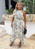Learn moreOur Black And Cream Zebra Print Zig Zag Hem Pleated Midi Dress is the perfect occasion dress. Featuring a pleated top with a racer neckline, a back neck loop closure, a shirred waist and a pleated midi skirt with a zig zag hem. Team it with some cute heels and a clutch to complete the look! Model wears: UK 8/ EU 36/ US 4 Model's height:165cm/ 5'5" Approx length from centre back to hem: 115 cm Fabric composition: 100% Polyester Colour: BLACK/CREAM *print position may vary*